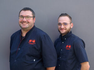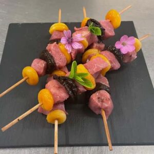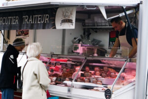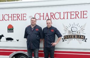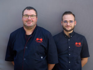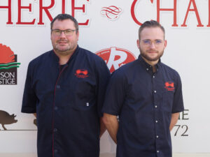 Benjamin son fils, Boucher de formation et meilleur apprenti de France 2020 a rejoint l’entreprise en 2022 ce qui a permis de développer l’activité de Boucherie. Leur particularité: boucherie-charcuterie-traiteur itinérante. Cgacun son domaine: Guillaume à la fabrication au laboratoire et Benjamin sur les marchés en Boucherie. Père et fils ils sont complémentaires.